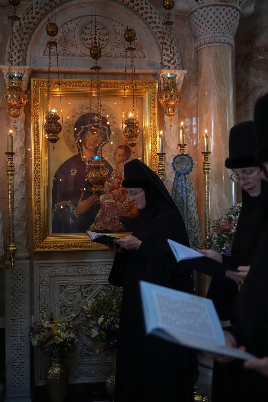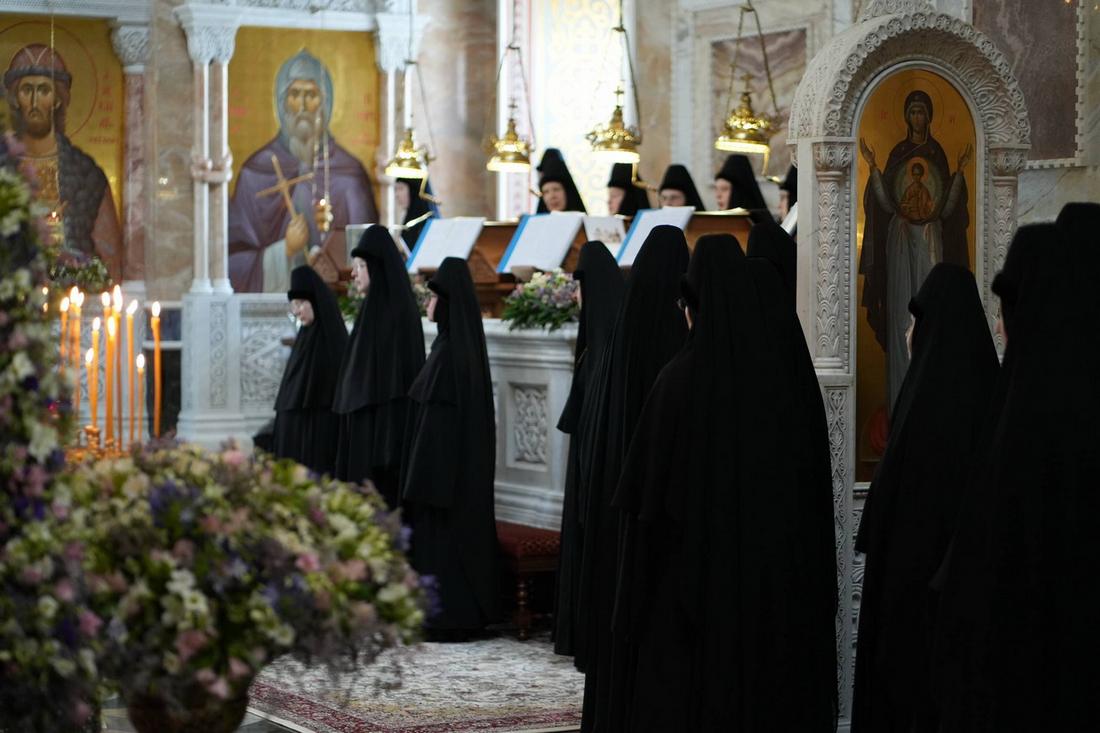 В отечнике есть такой рассказ. В некоем монастыре на престольном празднике в честь Пресвятой Богородицы один монах увидел Саму Божию Матерь. Она всю литургию помогала певчим, священникам, архиерею. Потом Она пошла на трапезу и служила гостям и братии. Затем Богородица вышла за врата монастыря, чтобы утешить сидящих там нищих. После этого Она вернулась в трапезную и стала служить тем, кто обедал позже. Среди них был и этот монах, который видел Ее (для других Она оставалась незримой). Монах бросился к Ее ногам, говоря: «Я должен служить Тебе, Госпожа моя, а не Ты мне!» На это Матерь Божия с улыбкой ответила: «Меня позвали на этот праздник, потому что посвятили Мне один из храмов. И Я воздаю честь тем, кто Меня почитает». После этого Она благословила всех и стала невидима. В главный праздник нашей обители, день Тихвинской иконы Божией Матери, все мы: и сестры, и прихожане, тоже чувствовали, что Пресвятая Богородица была вместе с нами.