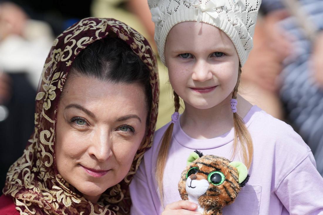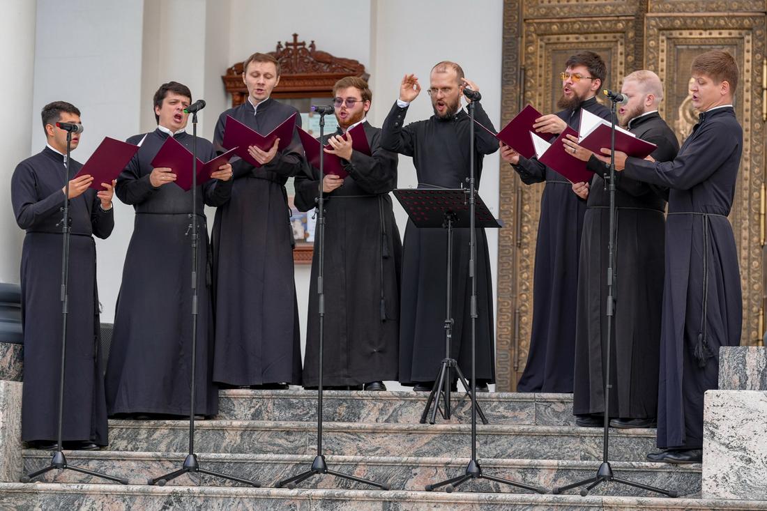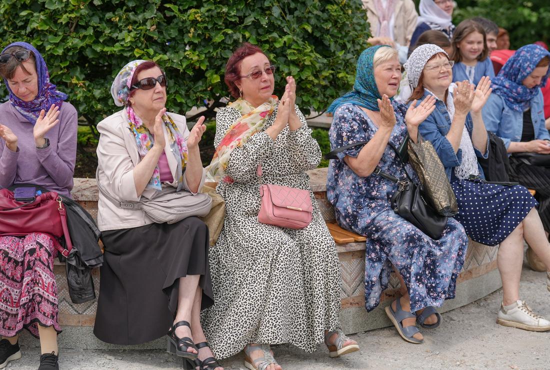 Теплым и солнечным продолжением праздника стал традиционный концерт. Талантливые исполнители хора «Горлица» и хора монастыря на Ганиной Яме «Держава» исполнили песни о вере и Родине.
