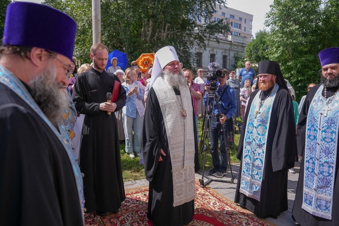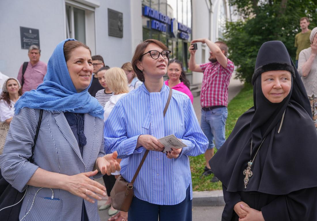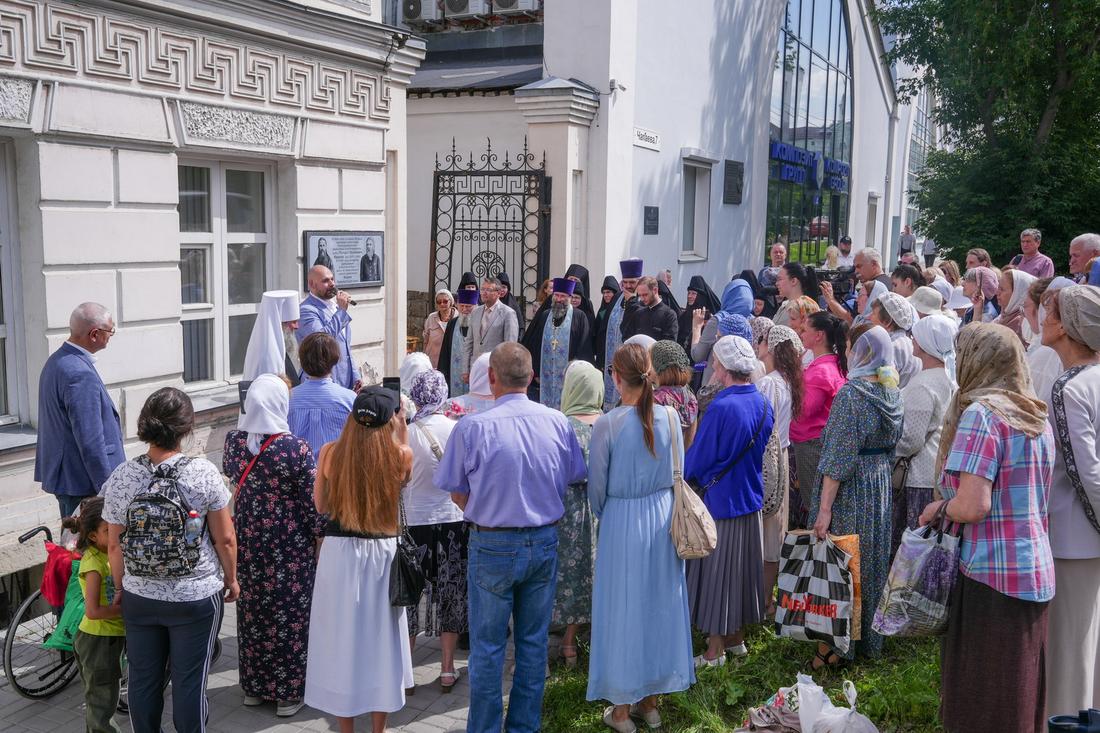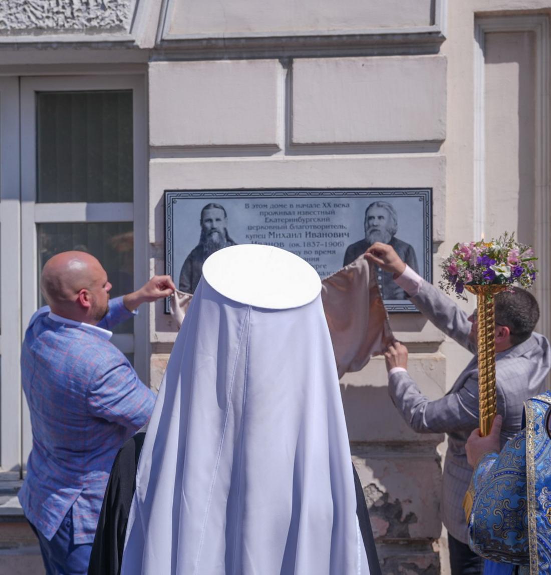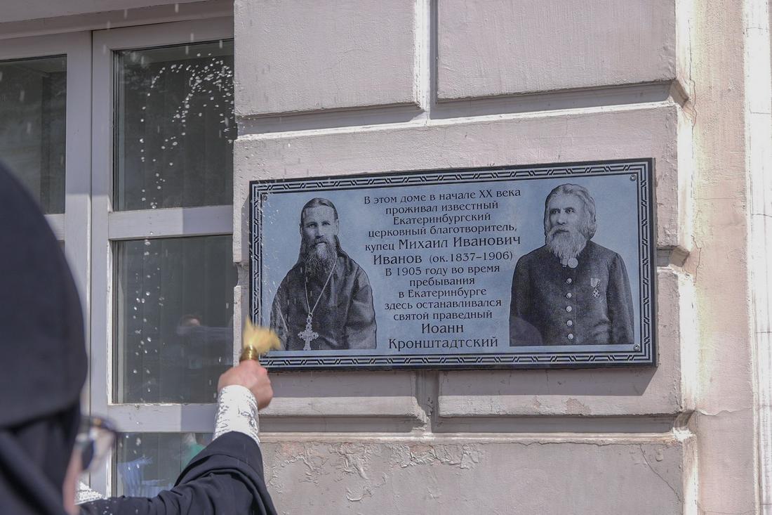 В праздник Тихвинской иконы совершилось еще одно знаменательное событие: митрополит Екатеринбургский и Верхотурский Евгений совершил освящение мемориальной доски, посвященной 120-летию посещения Екатеринбурга праведным Иоанном Кронштадтским. Во время пребывания в нашем городе праведный Иоанн Кронштадтский жил в доме церковного благотворителя, купца Михаила Иванова. Сейчас там располагается Центральная городская библиотека, и именно на этом здании была установлена мемориальная доска.