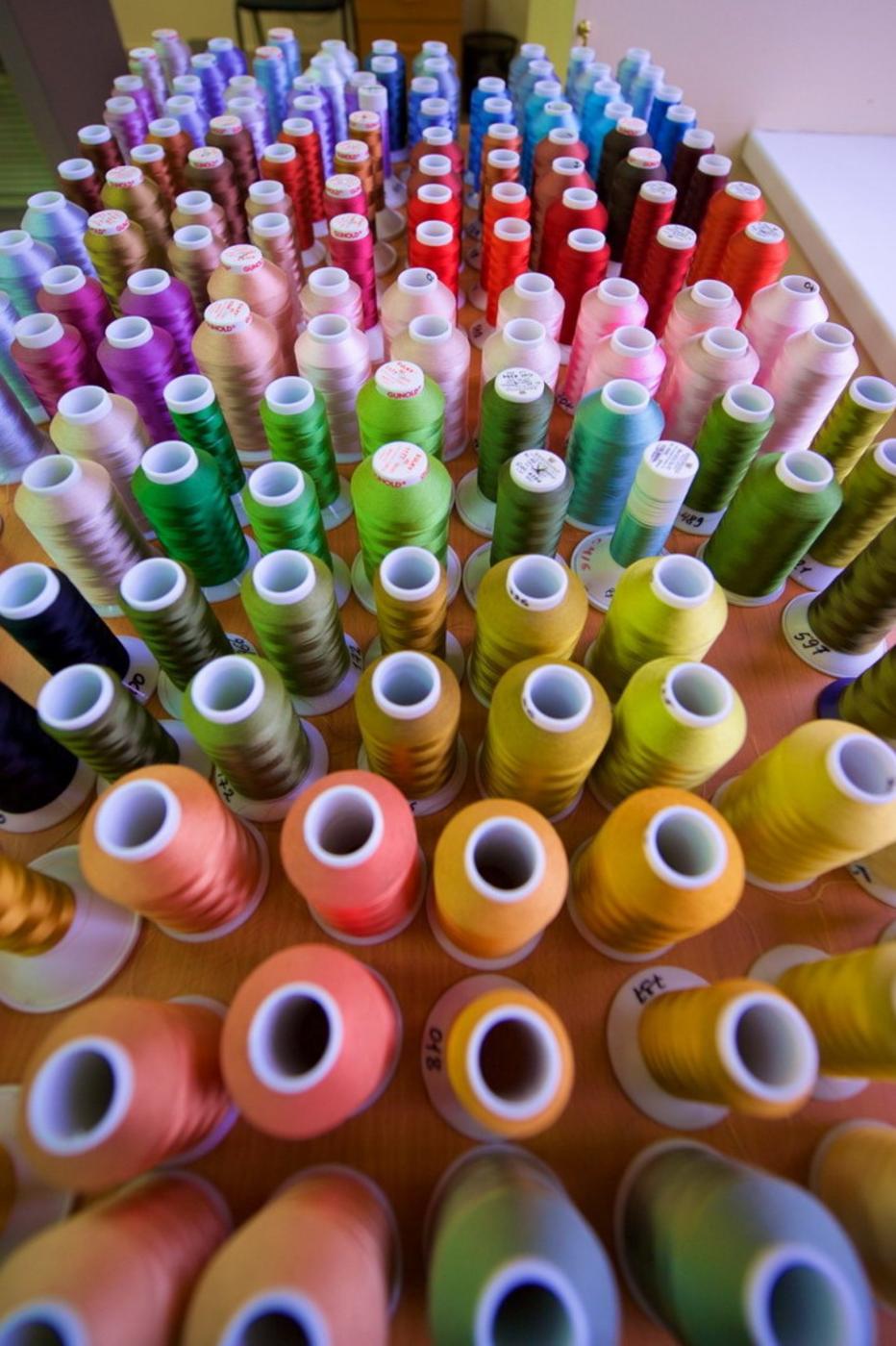 Параллельно с разработкой программы сестры подбирают нити нужных цветов. Для вышивки используются нити сотен оттенков. Однако иногда бывает так, что нити, точно соответствующей цвету на эскизе, нет. Тогда нужный цвет создается с помощью наслоений нитей, разреженности или наоборот большей плотности вышивки.