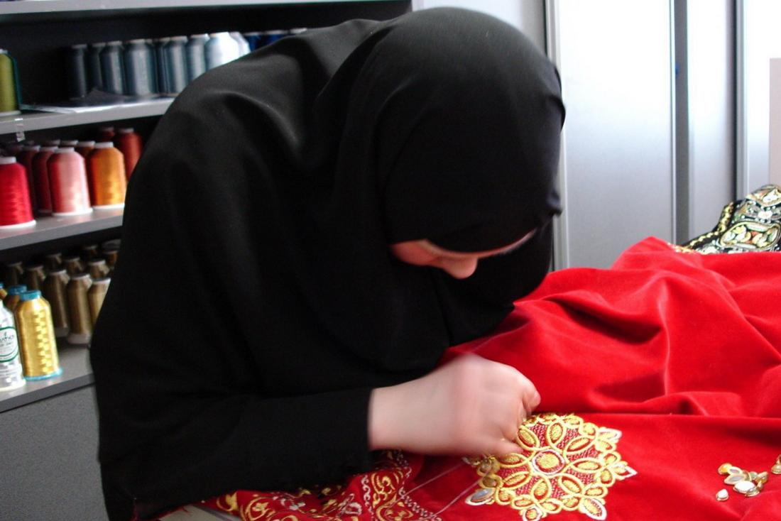 Пока идет вышивка, вышивальщица от машины почти не отходит. Есть распространенное заблуждение, будто машина вышивает сама, стоит только нажать на кнопку. Однако это вовсе не так. Как нужно уметь вышивать обычной иглой, точно так же и для вышивки на машине нужны талант, мастерство и навык. Каждая головка на машине вышивает по-своему: одной, например, «нравится», когда у нее повернута игла под одним углом, а другая «предпочитает» иной «ракурс». От мастерства вышивальщицы зависит, получится ли вышивка «рыхлой» или будет гладкая и четкая, словно писаная картина.