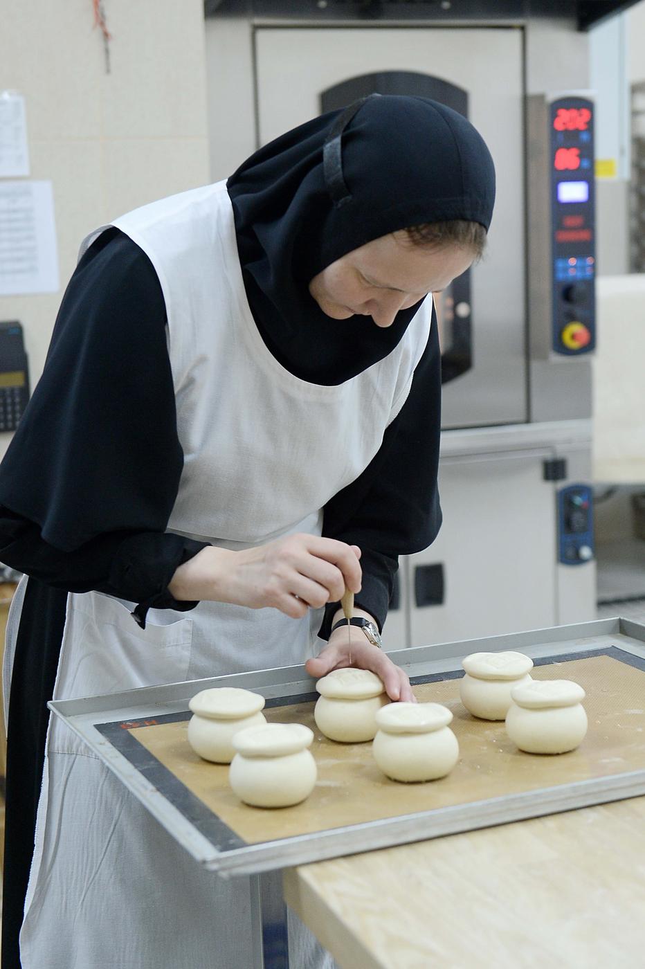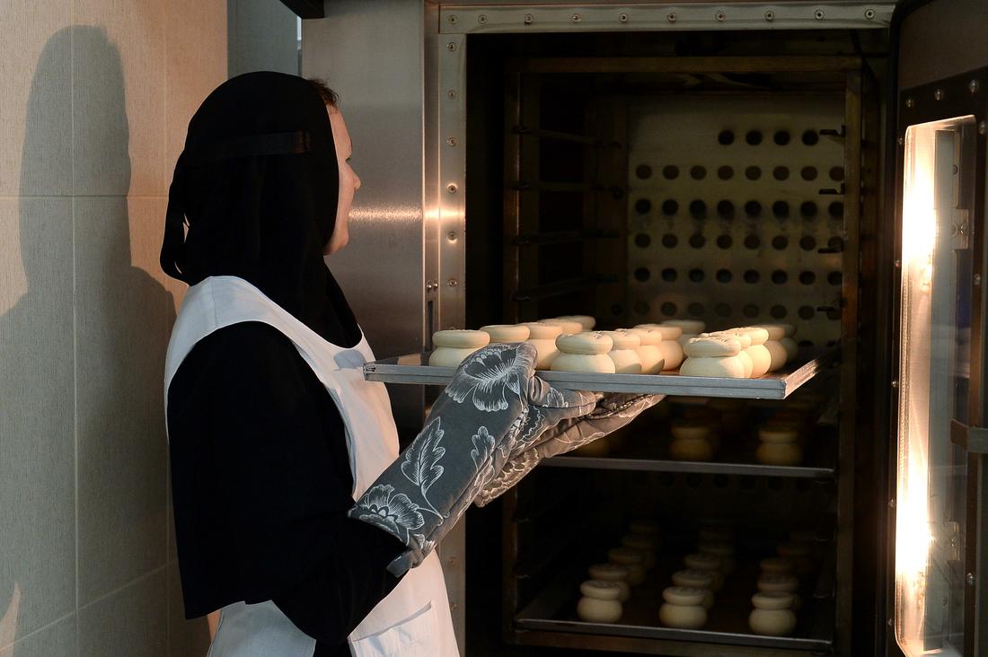 Это не просто одно из монастырских послушаний, но место, подобное храму. В просфорне совершается, можно сказать, священнодействие – тут приготовляется хлеб, который затем полагается на жертвенник в храме и претворяется в Тело Христово. Работы в просфорне всегда много: кроме служебных просфор, каждый день нужно выпекать маленькие просфоры для сестер и прихожан в несколько храмов, а также хлеба на всенощные бдения. «Когда человек вкушает просфору, тогда не приближается к нему нечистый дух, душа и тело освящаются, мысли озаряются на угождение Богу, и человек бывает склонен к посту, молитве и всякой добродетели». Георгий Затворник