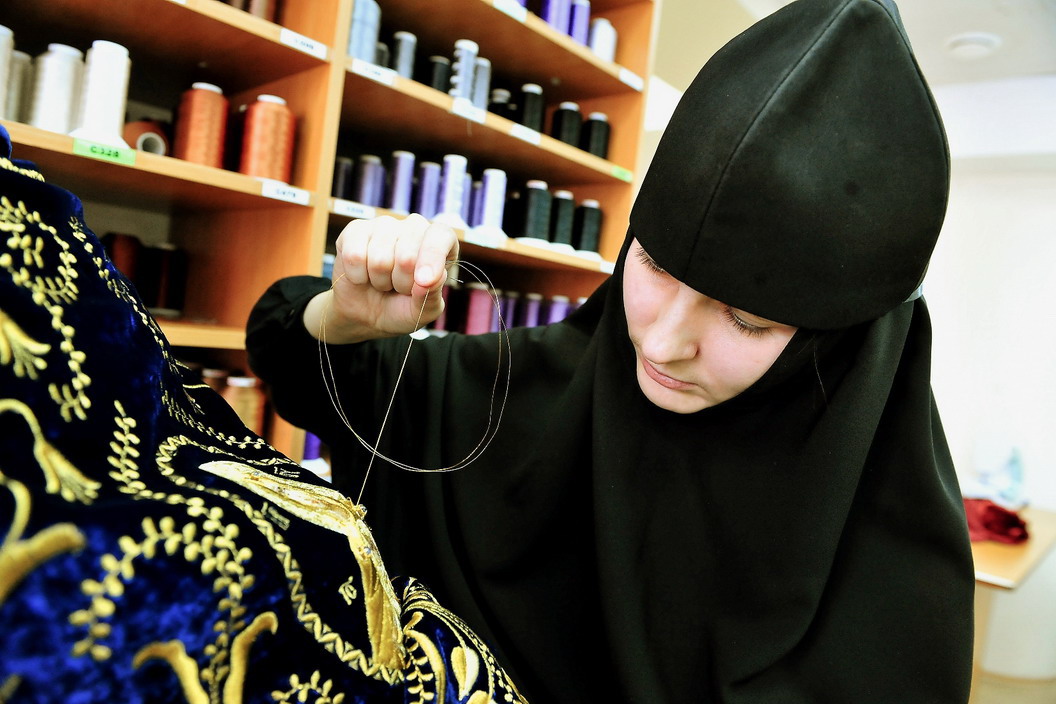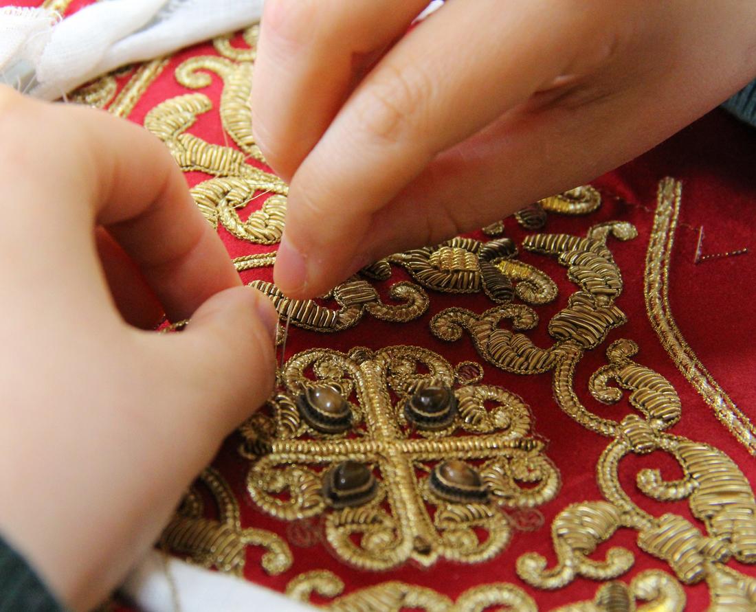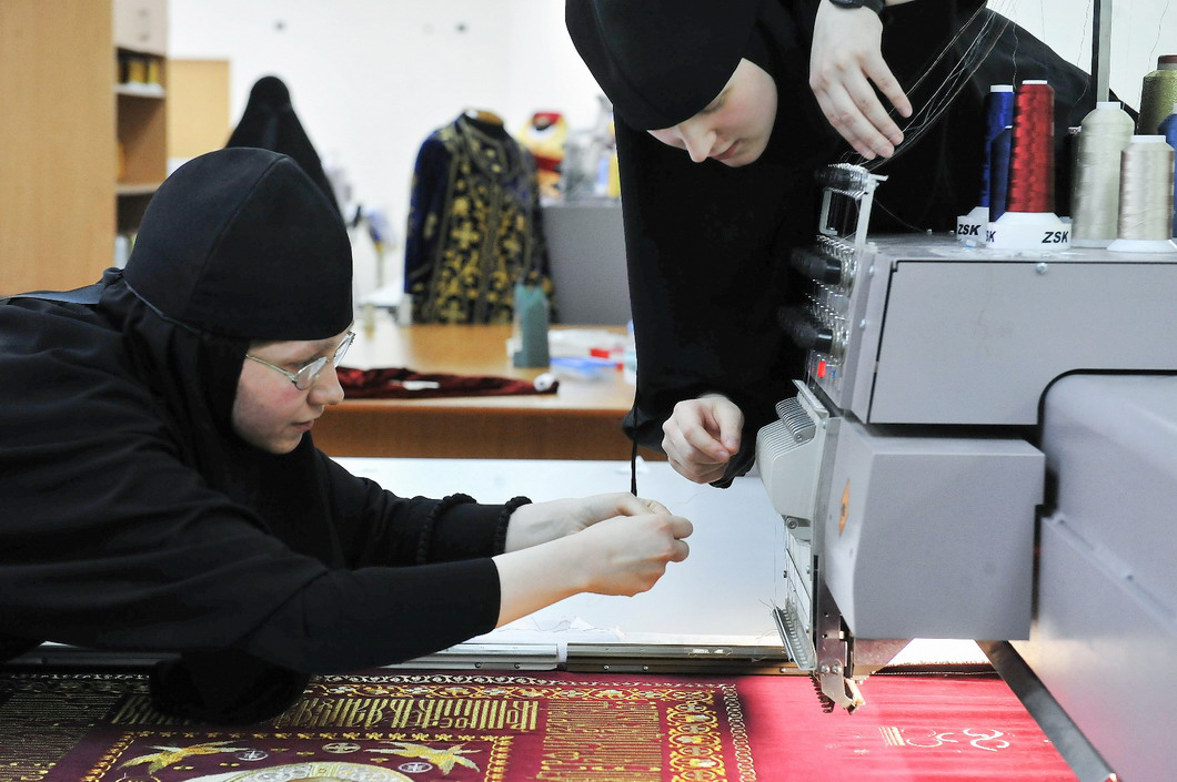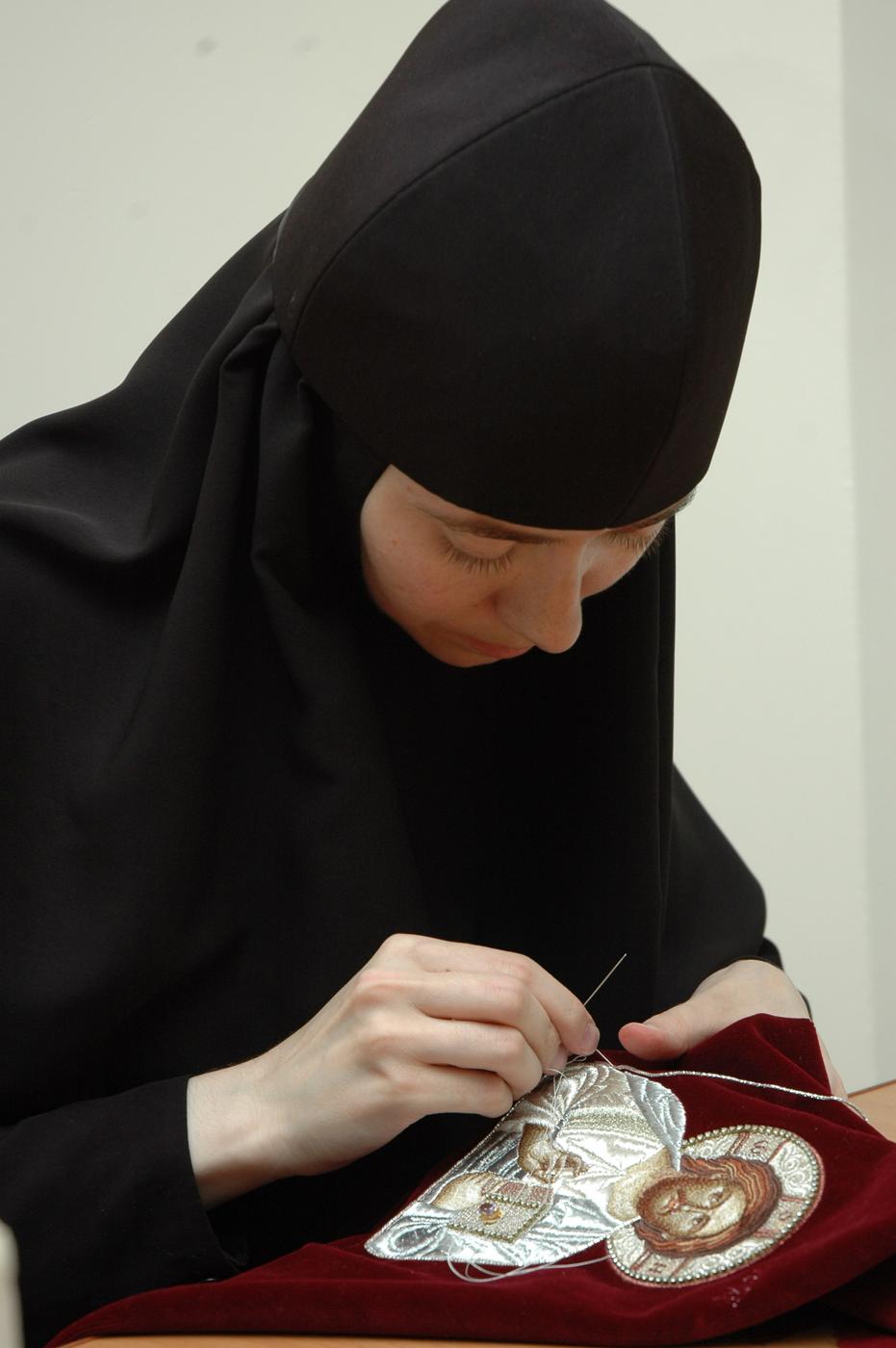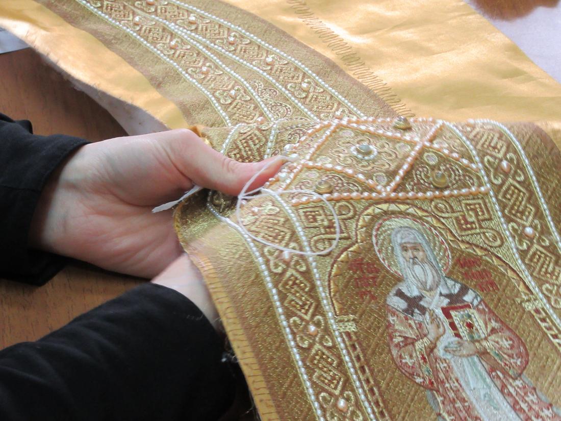 По преданию, Сама Богородица была искусной швеей. Не удивительно, что это ремесло так полюбилось монахам. С древности во многих монастырях существовали швейные мастерские, и наш монастырь не исключение. Сестры шьют и вышивают облачения для священнослужителей, иконы, плащаницы, хоругви, покровцы.