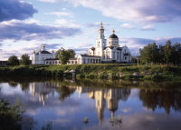 Небольшое старинное село на берегу тихой реки. Много таких поселений затеряно в сибирских далях: черные от времени избы, рябины под окнами, невдалеке – безмолвный лес… Казалось бы, ничем не отличается это село от других, но, словно светлое солнце, озаряют его два Божиих храма, устремленные куполами к Небу. Сколько под их сводами слышалось молитвенных прошений, сколько пролито здесь скорбных и благодарных слез, сколько горя претворилось в утешение и тихую радость – как в прежние века, так и ныне каждый получает здесь успокоение и исцеление. Это село Меркушино, в котором расположено ныне подворье нашего монастыря. Именно на этой земле жил праведный Симеон Верхотурский, чудотворец всея Сибири. Сюда постоянно стекаются сотни паломников — люди идут отдохнуть душой, помолиться, испить воды из цельбоносного Симеоновского источника.