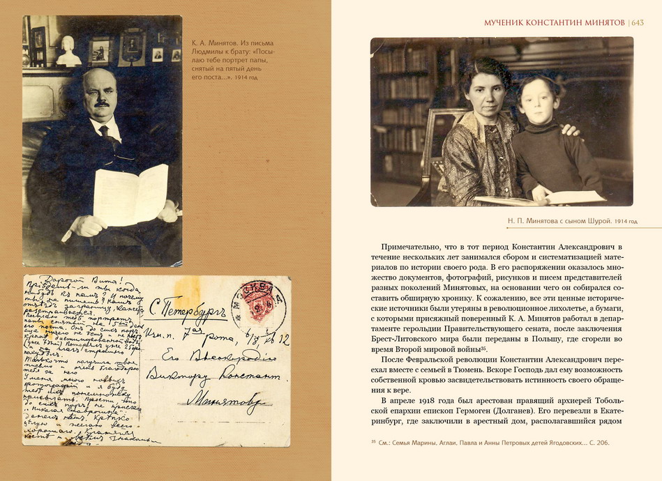 Константин Александрович Минятов по происхождению был сыном католика. Он был крещен матерью в Православии, но много лет оставался равнодушным к вере. В университете Константин увлекся марксистскими идеями и стал активным участником социалистических кружков. Но Господь, с любовью склоняющийся над каждым человеком, не оставил его в этом заблуждении. Несколько лет Константин жил заграницей, будучи в России объявленным в розыск. В отрыве от привычной обстановки его взгляды переменились, он начал посещать русскую православную церковь в Берлине, беседовать со священниками, и душа его словно очнулась — Константин Александрович решил в корне переменить свою жизнь.