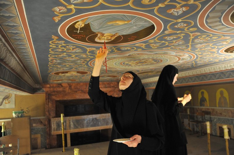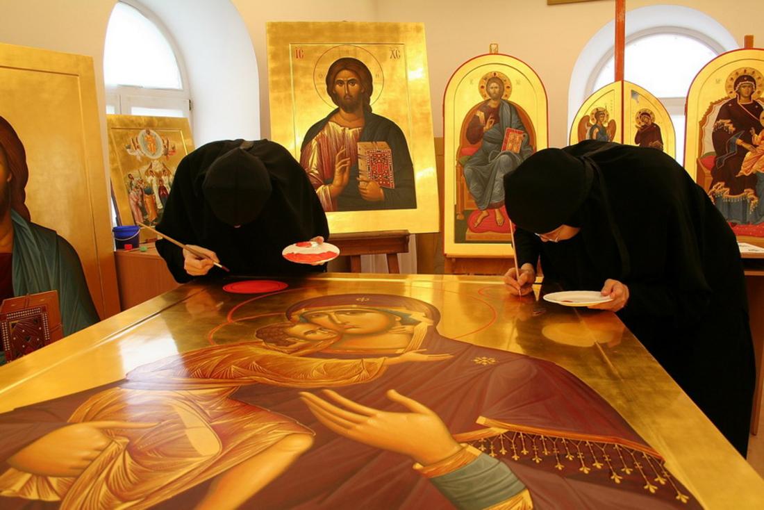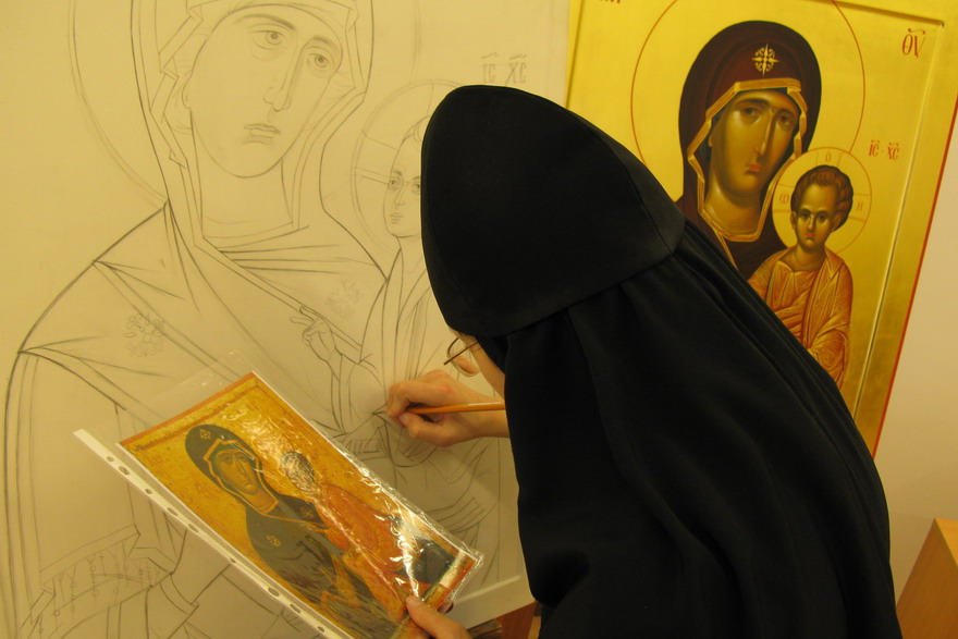 В храмах сестры часами тщательно копируют образы, написанные древними мастерами. Благодаря этой работе они осваивают уникальный иконописный язык.