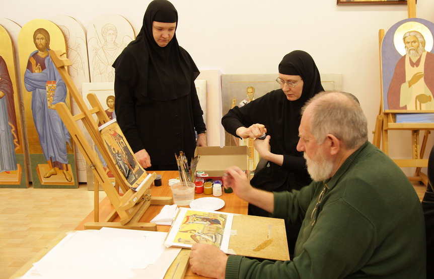 Иконописцам, конечно, необходимо постоянно совершенствовать навыки рисунка и живописи, пластической анатомии и композиции, умение передавать живые краски природы. С ними регулярно занимаются профессиональные художники; особенно сестры благодарны чете Анциферовых, художникам Василию Григорьевичу и Любови Геннадьевне, с которыми дружат уже много лет.
