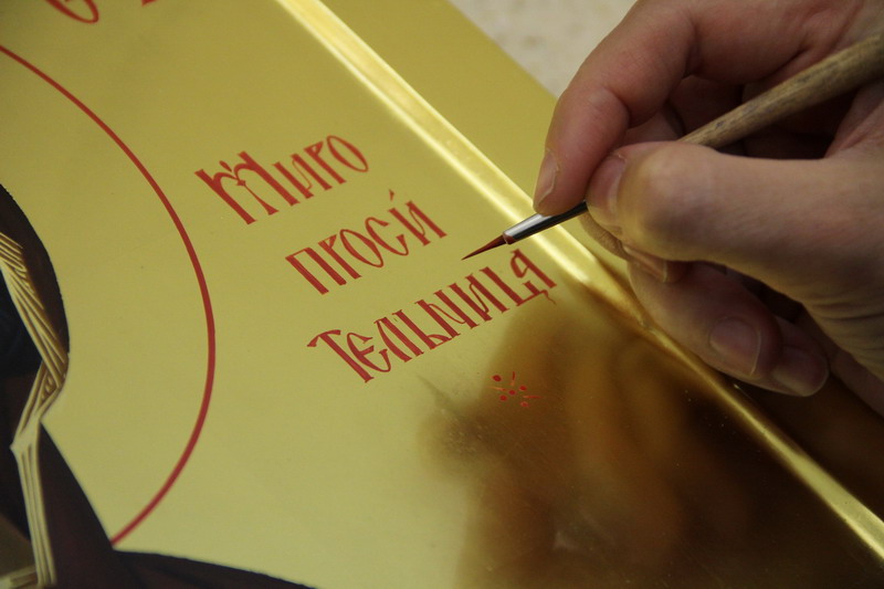 В работе над каждой иконой участвуют несколько сестер: одна наносит левкас (грунт), другая делает рисунок, третья накладывает золото.