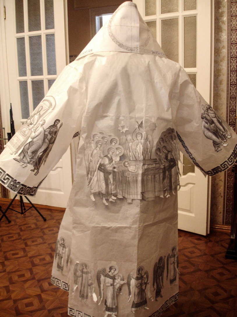 Этот макет облачения из бумаги сестры сделали, чтобы посмотреть общую композицию изделия. Для них это был хороший опыт, который очень помог в дальнейшей работе над облачением.