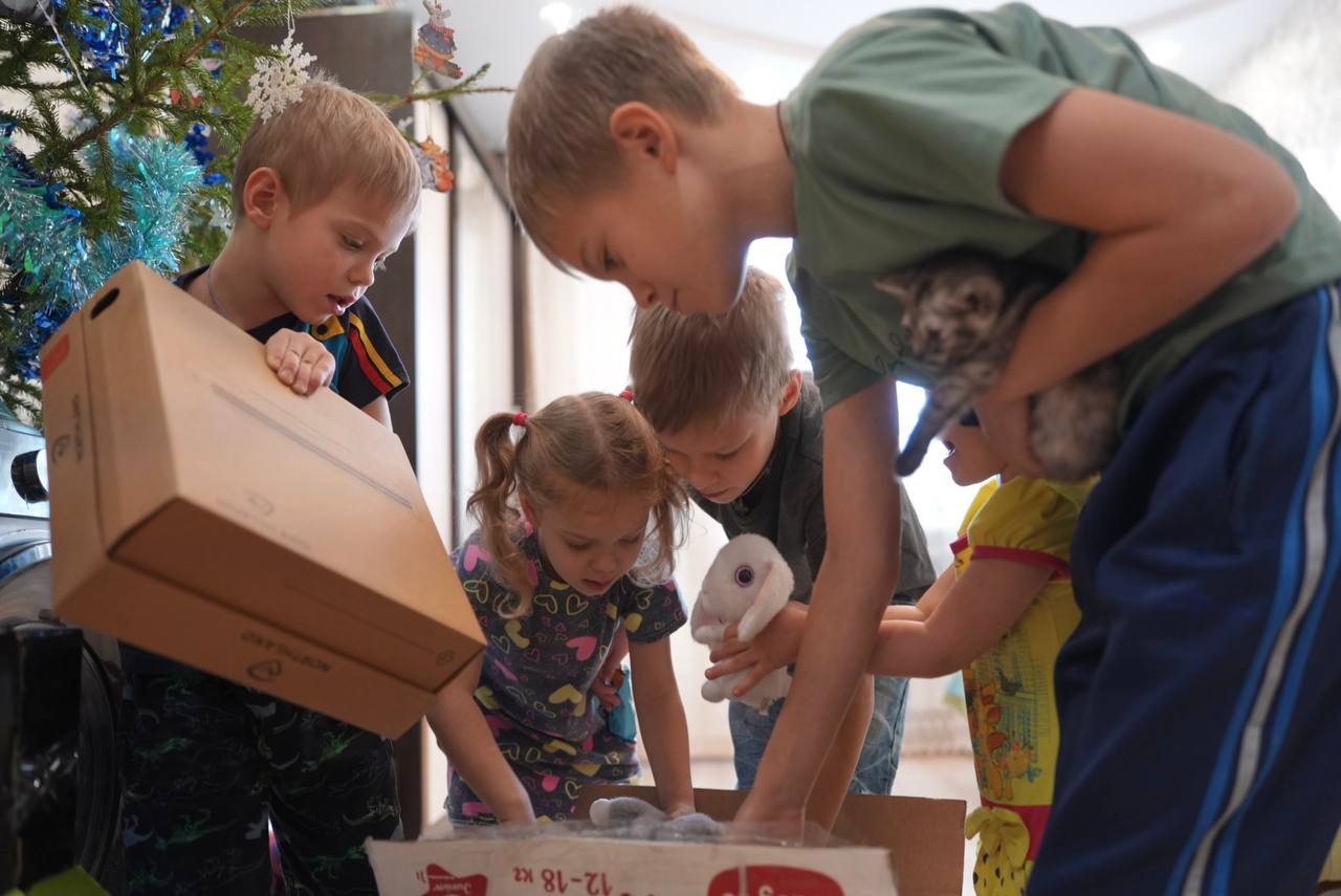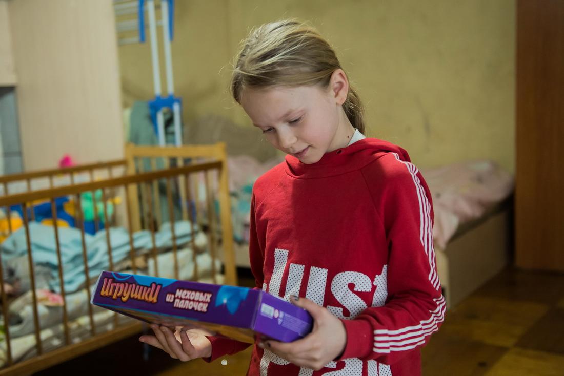 В многодетной семье матушки Дарьи скоро будет шестой малыш. Двоих детей, когда мы приехали, дома не оказалось – мальчики помогали в храме готовить необходимое для рождественской службы. Зато оставшиеся дети втроем с удовольствием разобрали коробки с подарками, не забывая откладывать подарочки и братьям.