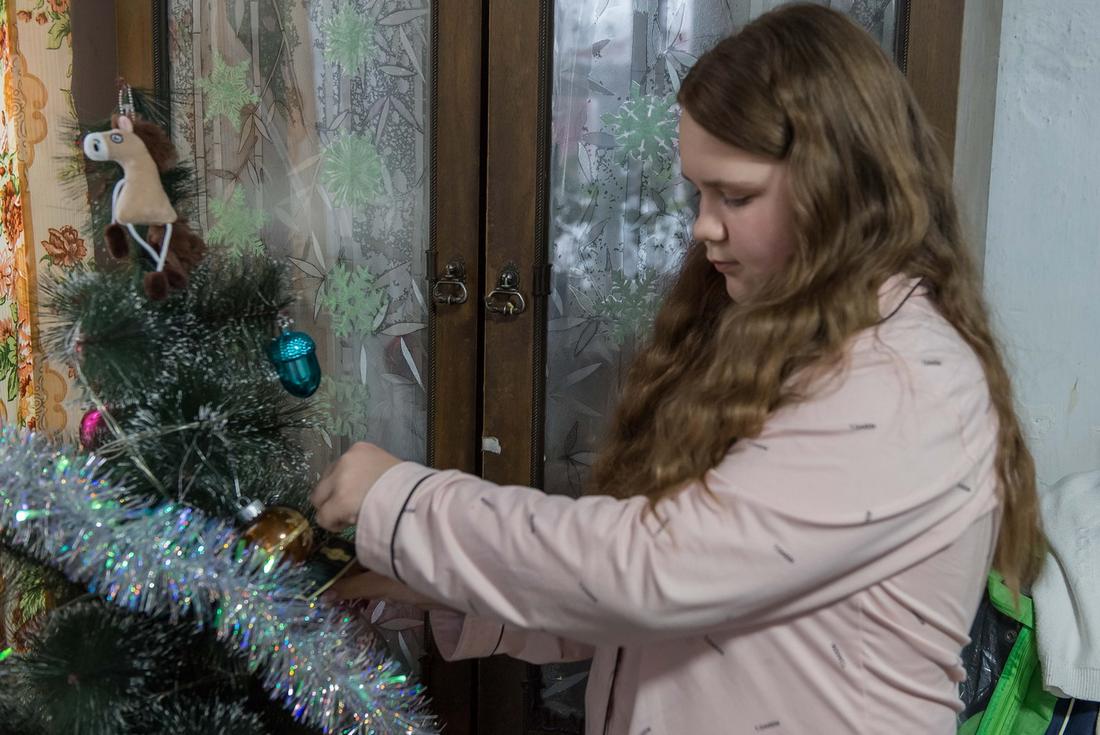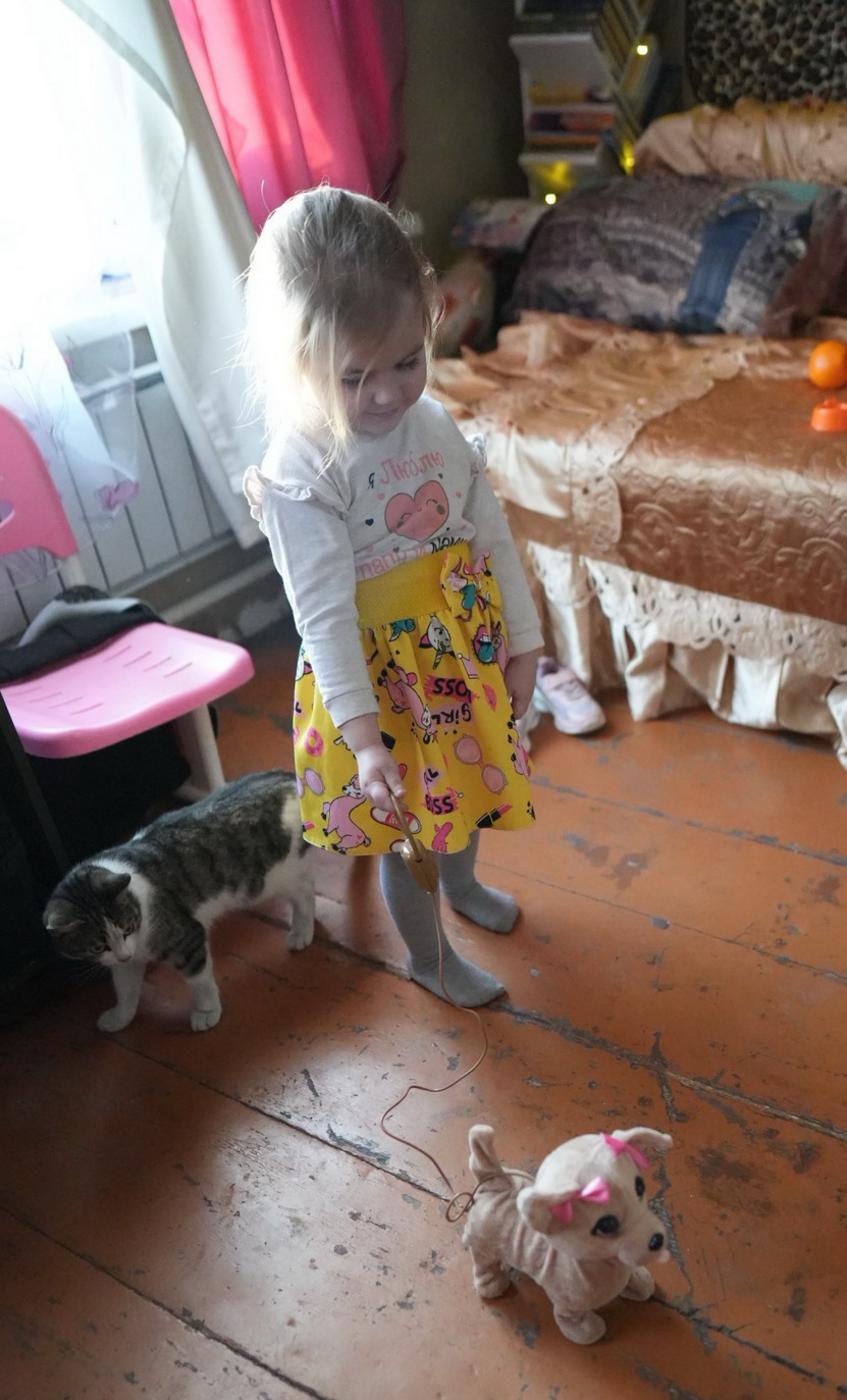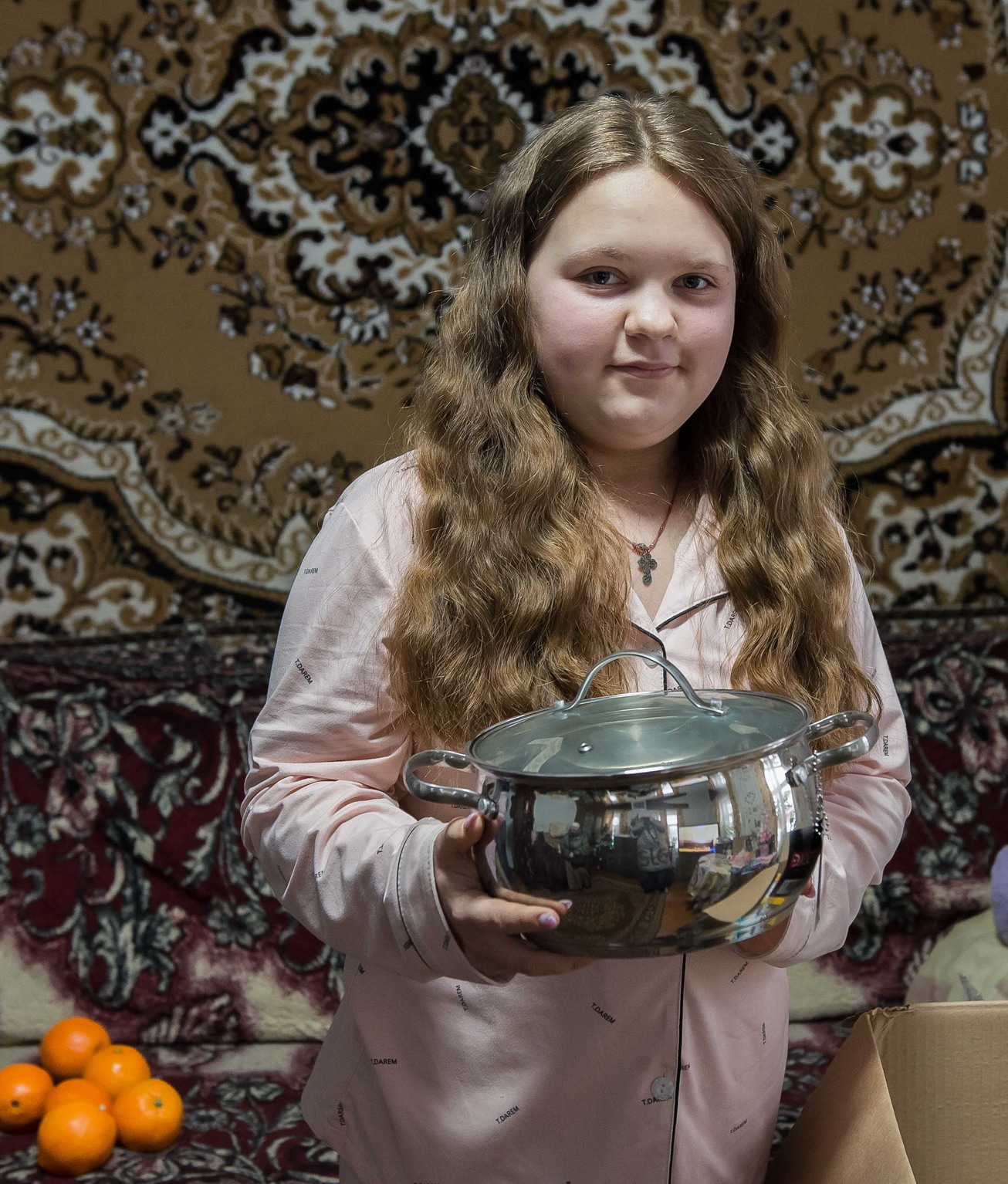 1,5 годовалая София спала, когда мы приехали, и будить малышку не стали, подарки разбирали Арина, Лиза и их мама – вдова с тремя дочерями. На днях она обморозила руки глубоко, так что пришлось добираться до травмпункта, а он в 60 километрах от поселка, как и ближайшая больница. У этой семьи был долг за бурение скважины, которая вышла дороже, чем рассчитывали, и получилось помочь им закрыть долг, так что в новый год семья вступила без кредитов и долгов! И это еще одно Рождественское Чудо этой акции. Несмотря на то, что в семье нет мужских рук, они держат несколько коз и кур. Козочки как раз вышли погулять и покушать во двор, где их удачно поймала фотокамера. Девочки радовались наушникам, красивым канцтоварам и наборам для творчества, а мама – кухонному комбайну.