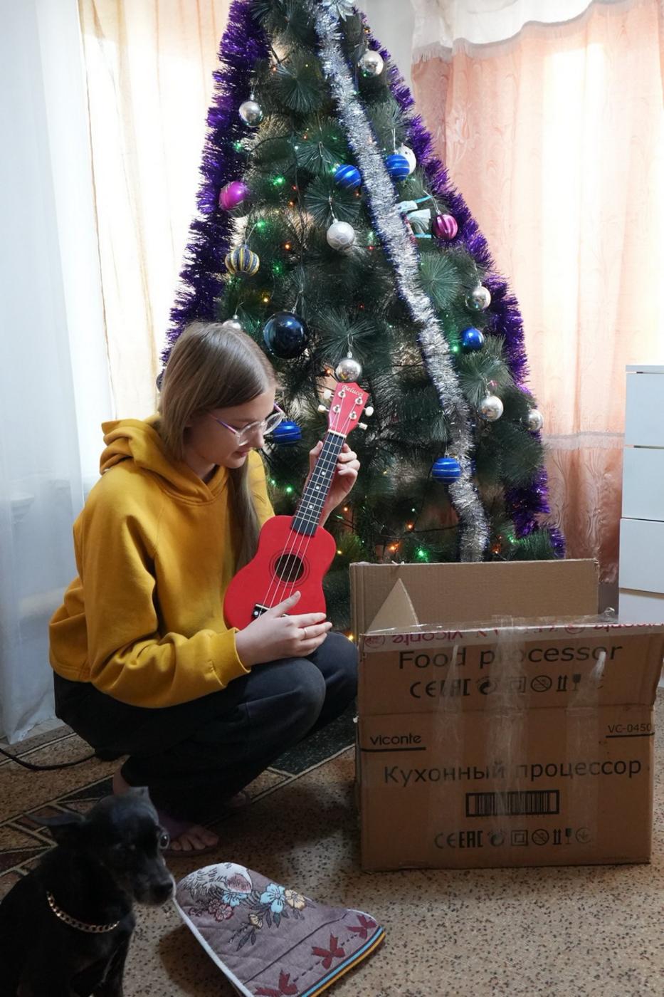 Лиза тоже выбежала встречать нас, как только машины аккуратно прижались к краю дороги, чтоб не увязнуть в сугробах. Она гостеприимно раскинула руки со словами: «Милости просим!» Лизе привезли и электрическую гитару, и укулеле. Она сыграла нам на обеих! Музыкально одаренная девочка, которой подарки принесут большую пользу.