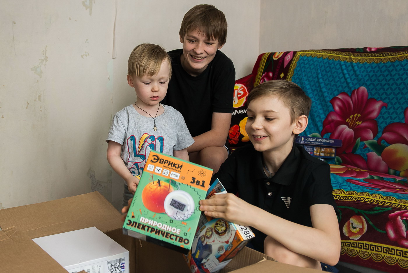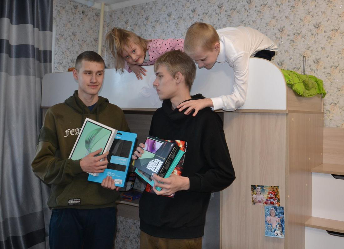 В семью с четырьмя детьми приехали важные для старших школьников планшеты, потому что сейчас у старшеклассников много заданий через интернет. А младшим привезли развивающие и познавательные наборы, книги и много полезного для их увлечений. Планшеты пожертвовали не специально для этих ребят, а «хоть кому», но, когда благодетельница получила фотоотчет, она написала: «Вы не поверите, именно об этих ребятах я думала, и хотела, чтоб им досталось!»