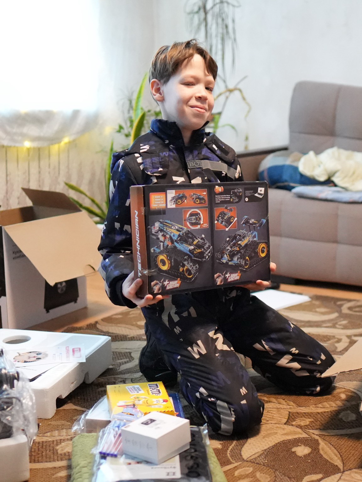 Николай живет в 5-этажном доме, но сразу пошел примерять лыжи и пробовать их в деле. Лего техник и лего с электромоторами вызвали настоящий восторг, он взахлеб рассказывал нам и бабушке, что теперь можно сотворить с такими наборами.