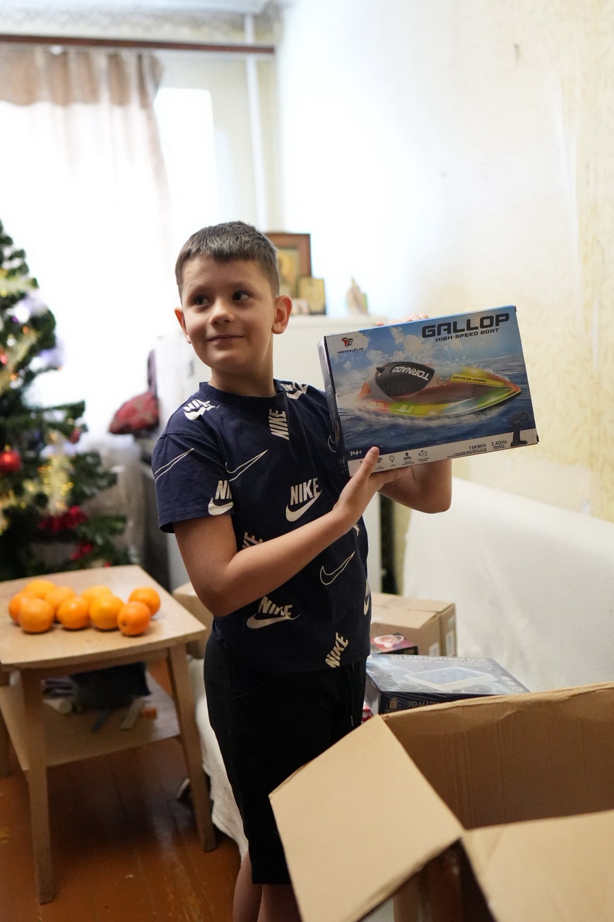 В семье, где три мальчика, между братьями большая разница в возрасте – им 17, 11 лет и 4 года. Но, на удивление, они дружат и им интересно общаться друг с другом. Подарки были каждому по возрасту, но больше всего, конечно, досталось 4-летнему Ванечке.