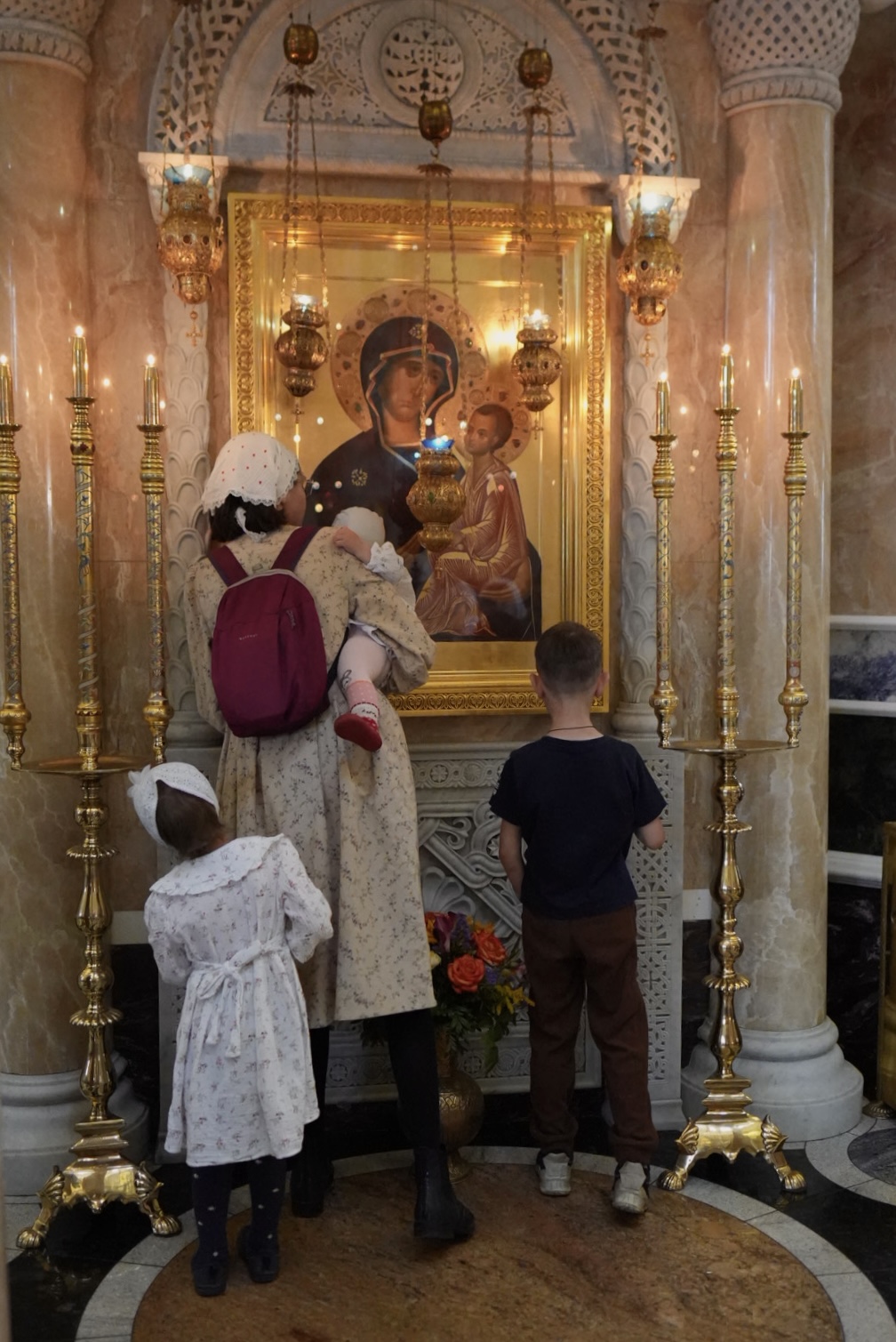 «В 2006 году я первый раз приехала в монастырь попросить молитв за мужа, мы ждали пятого ребенка, а работу муж найти не мог, иногда пил. Я помолилась, как могла, на Литургии здесь в монастыре и заказала службы за мужа. После, когда я вернулась домой, его взяли на хорошую работу, всё устроилось.